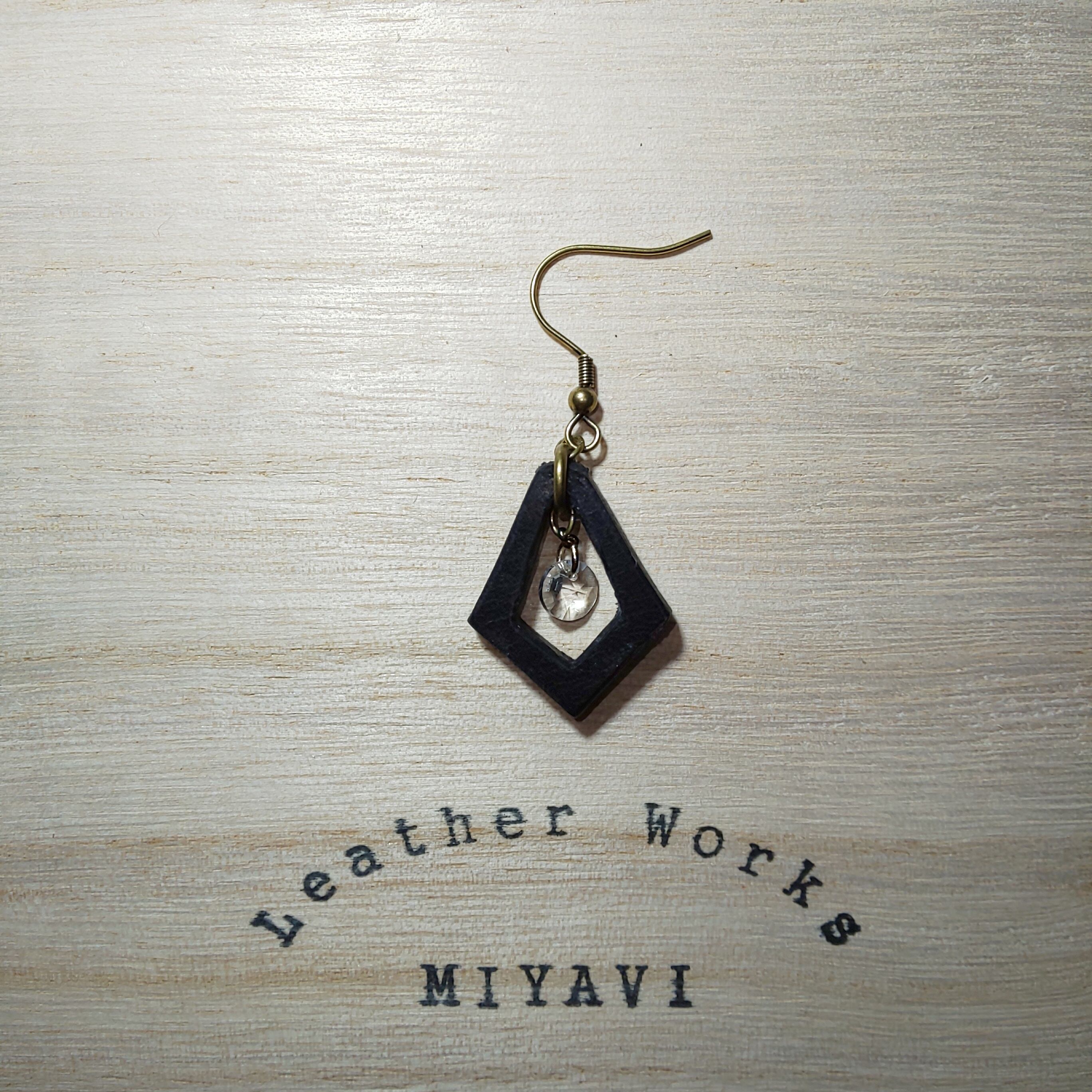 オイルヌメ革とSWAROVSKIを使用したフックピアスです。