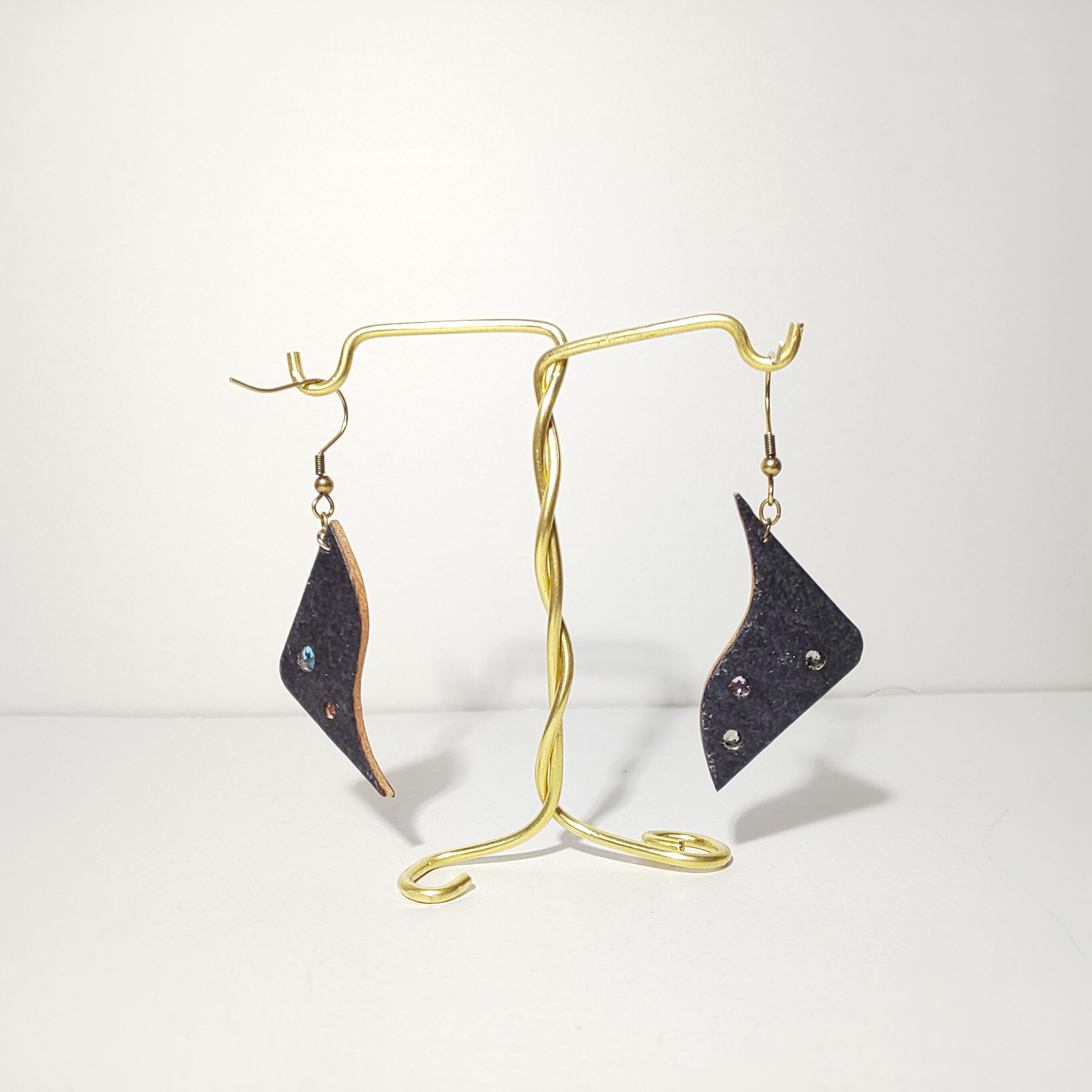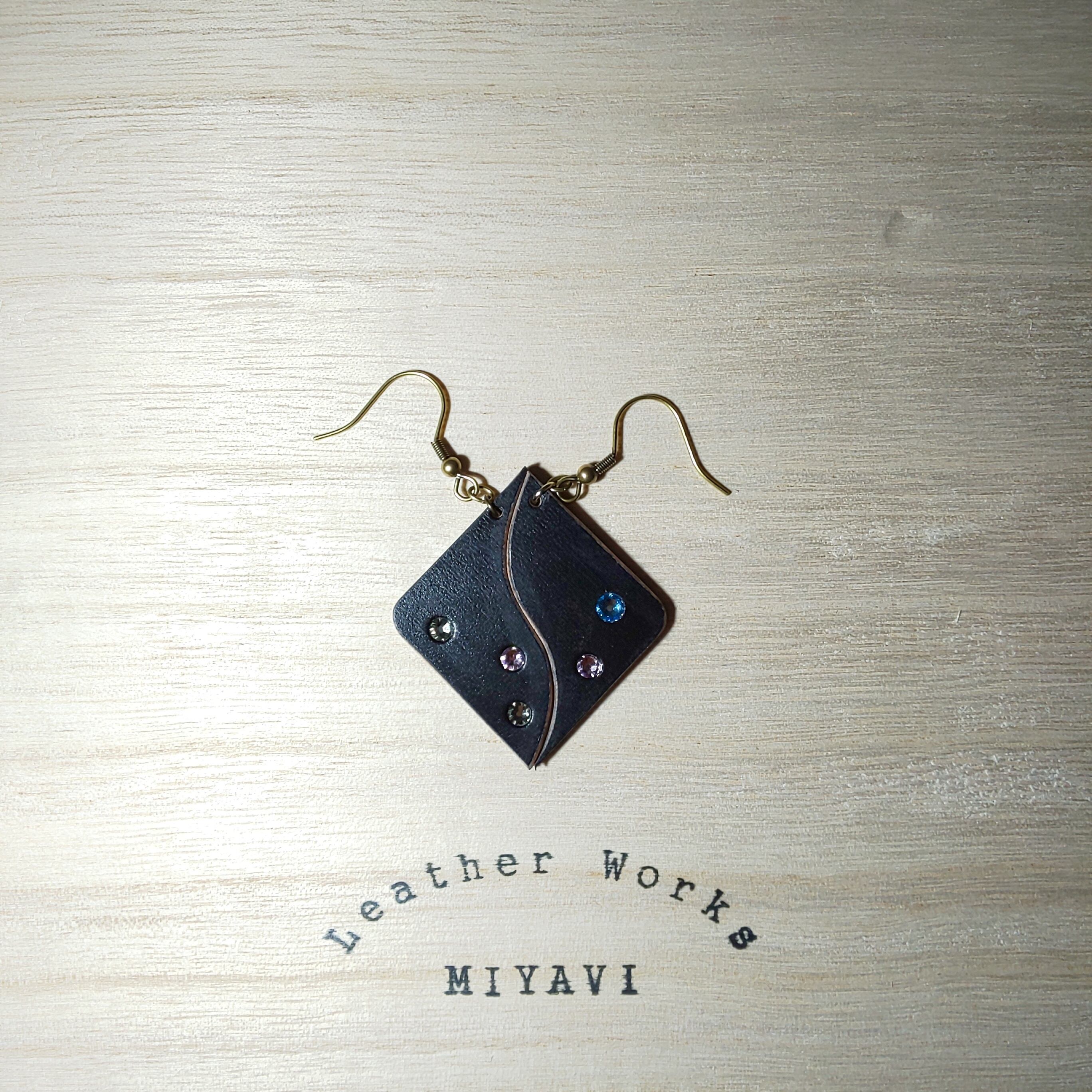 ブライドルレザーにスワロフスキーを埋め込んだフックピアスです。